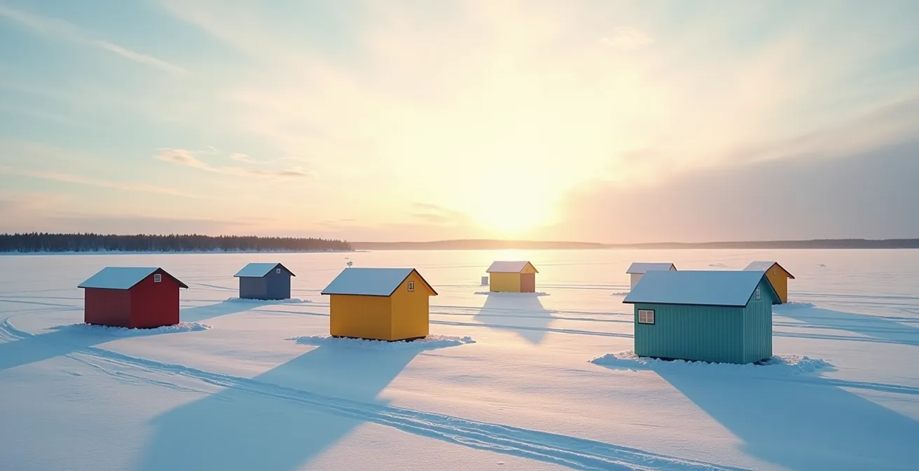 L’exemple le plus emblématique de cette culture est sans doute le village de pêche de Sainte-Anne-de-la-Pérade. Chaque hiver, ce ne sont pas quelques cabanes, mais plus de 500 qui sont installées sur la rivière Sainte-Anne, créant une véritable petite ville sur la glace. Comme le décrit l’étude de cas sur ce village unique, les pourvoyeurs vont jusqu’à pomper de l’eau pour épaissir artificiellement la glace afin qu’elle puisse supporter le poids des véhicules. C’est un spectacle fascinant qui illustre parfaitement cette transformation de l’activité de pêche en événement social. L’ambiance y est festive, familiale. La tourtière qui mijote sur un petit poêle, les rires qui fusent d’une cabane à l’autre… la prise du petit poisson des chenaux devient presque secondaire face à la richesse de l’expérience humaine.